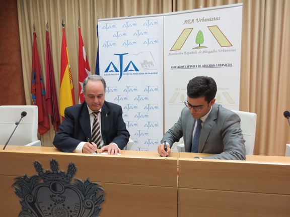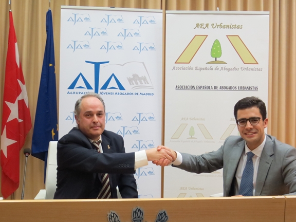 El acto ha tenido lugar en el Salon de Actos del Ilustre Colegio de Abogados de Madrid. En virtud de dicho acuerdo se estrecharan las relaciones entre ambas Asociaciones para llevar a cabo actividades y eventos conjuntos en beneficio de sus asociados. Además los que pertenezcan a la Agrupación de Jóvenes Abogados de Madrid podrán beneficiarse de importantes descuentos en todos los cursos formativos que la Asociación organiza cada año para formar a profesionales en la materia de Urbanismo, como son los “Cursos de Aproximación al Derecho Urbanístico” que va ya por su Xllª edición. Tambien la Asociación Española de Abogados Urbanistas otorgará becas de estudio a miembros de la Agrupación de Jóvenes Abogados de Madrid.