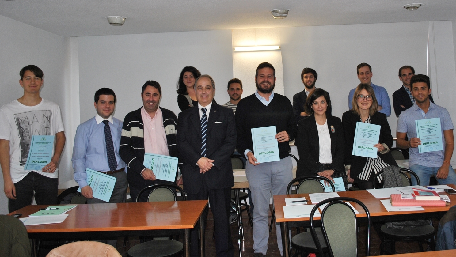 Algunos alumnos tras recibir su Diploma junto con el Presidente de la Asociación Jose María García Gutiérrez (en el centro).